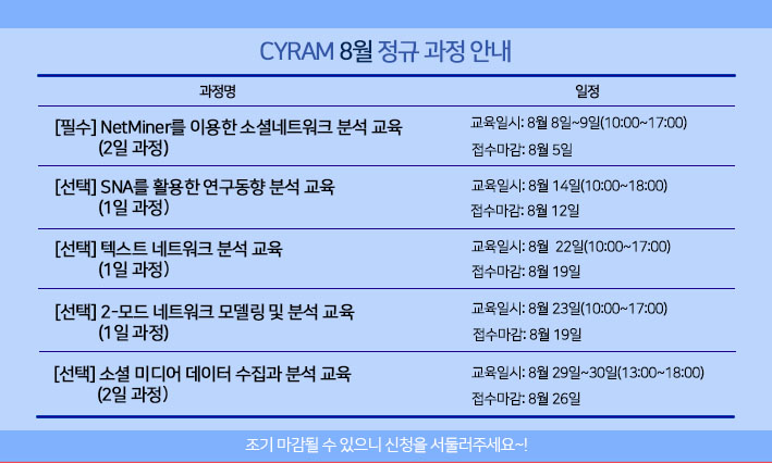 * 2019년 넷마이너 SNA 교육 연간 일정은